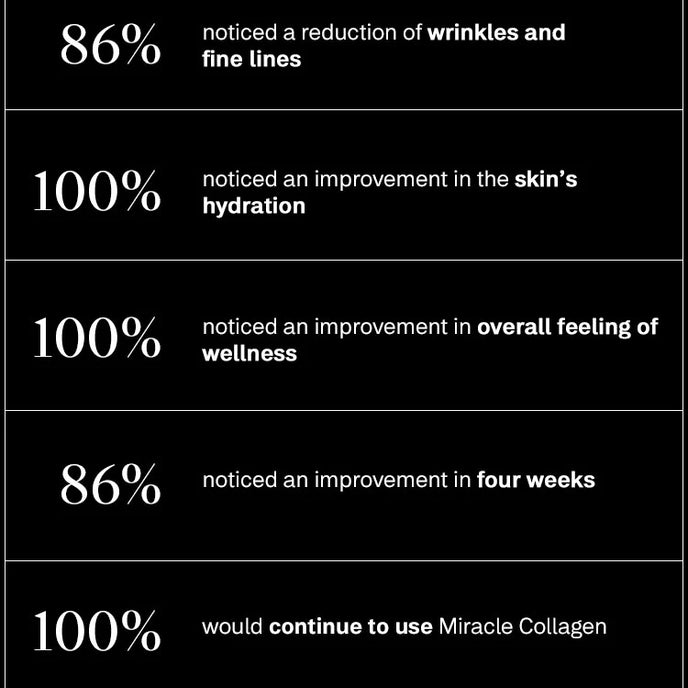 This is skincare from within. Collagen naturally breaks down over time, and environmental aggressors like stress, UV exposure and pollution can accelerate this process. Miracle Collagen contains bioactive collagen peptides with a specific molecular weight of 2kDa, clinically shown to stimulate the skin cells to produce more collagen and elastin and strengthen the hair and nails. Clinically shown to have a significant impact in improving the appearance of cellulite